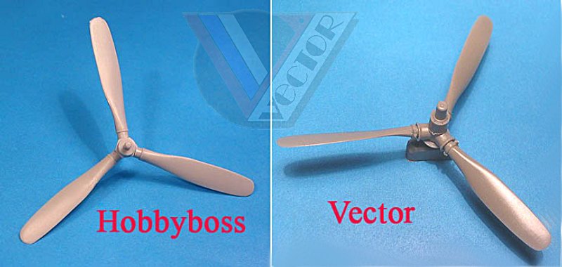 Dieser Satz für die FM-2 Wildcat ist wahrscheinlich der am wenigsten dringende. Die Form der Blätter, Propellerkreis-Durchmesser und allgemeines Aussehen sind doch recht ähnlich. Allerdings liegt der Unterschied im Detail. Der Vectorsatz ist filigraner, die Blätter sind dünner und geschwungen und es gibt einige Details, die beim Bausatzteil nicht zu finden sind. Das Material entspricht dem der anderen Sätze. Auch eine Bauanleitung liegt hier nicht bei, ersetzt dieser Propeller doch einfach das Bausatzteil. Der Bausatz kann mit und ohne Propellerkappe gebaut werden.