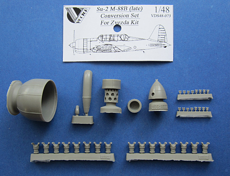 Bereits kurz nach dem Erscheinen des Bausatzes hat Sergei Kosatschow einige Zubehörsätze für die Su-2 von Zvezda angekündigt. Mittels diesen Satzes kann der geneigte Modellbauer die zweite Hauptvariante der Su-2 darstellen, die mit dem verbesserten M-88B ausgestattet war. Auch dieser Satz enthält einen Motor. Eine kleine Schemazeichnung erklärt die vorzunehmenden Änderungen, die auch die Neugravur eines Teils des Vorderrumpfes umfasst. Ein verbesserter Spinner liegt dem Set ebenfalls bei.