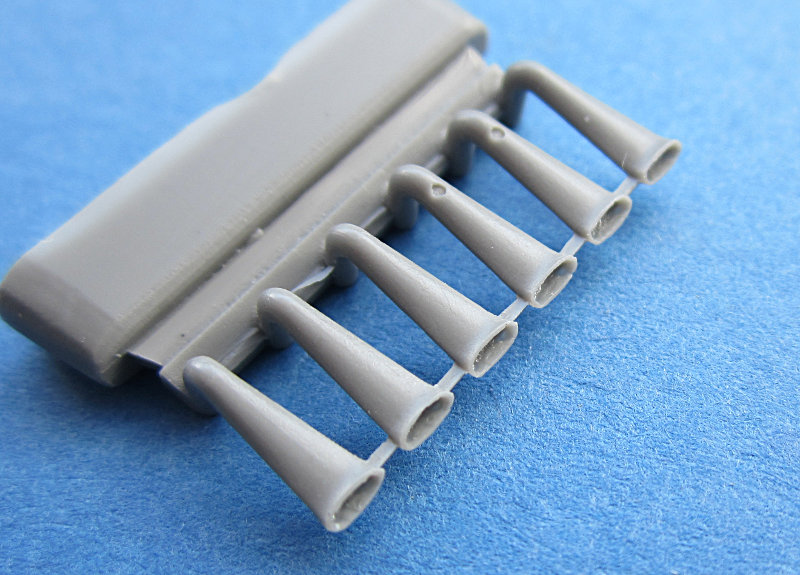 Die wichtigste Verbesserung für mich sind die Auspuffstutzen. Sergei hat die Teile analog der Bausatztele gestaltet, so dass ein einszueins Ersatz stattfinden kann. Ich werde jedoch wieder auf meine Vorgehensweise wie beim ersten Bau zurückgreifen. Die Bauanleitung ist übrigens bei der Positionierung der Beulen nur mäßig hilfreich. Eine Recherche ist hier unbedingt anzuraten.