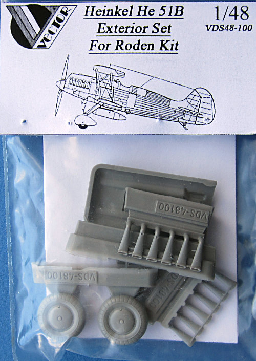Für Rodens Heinkel He 51B (First Look) gibt es von Vector diesen Detail- und Korrektursatz. Sergei hat sich am meisten an den fehlenden Beulen auf der Motorabdeckung geärgert, ein Faktum dass ich erst bei intensivem Studium von Fotos wiedergefunden habe. Dafür allein lohnt natürlich kein Satz und so hat Vector auch noch hohl gegossene Auspuffstutzen, besser detaillierte Räder und eine optimierte Motorhaube beigefügt. Letztere ist in meinem Exemplar im Bereich des vergrößerten Lufteinlaufs etwas beschädigt. Zum Glück wird hier von innen noch ein Teil eingesetzt, das Stabilität gibt und mit dessen Hilfe ich die Reparatur angehen werde. Dies ist eben der Nachteil der Verpackung in Plastiktütchen.