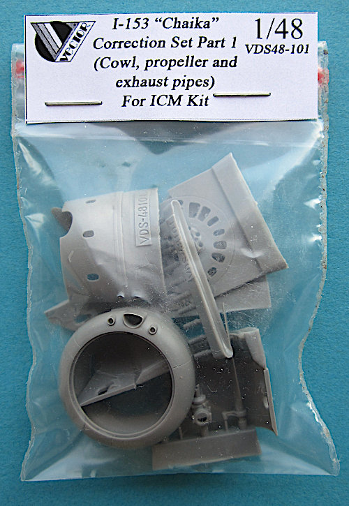 Für ICMs Polikarpow I-153 "Tschaika" (First Look) gibt es von Vector drei Detail- und Korrektursätze. Dieser erste Satz korrigiert die im Review genannten Probleme mit der Motorhaube und den zu kleinen Auspuffstutzen. Dazu gibt es noch einen wunderbar detaillierten Propeller. Ein Blatt war bei mir schon lose in der Verpackung, das ist halt der Nachteil der Verpackung in Tüten