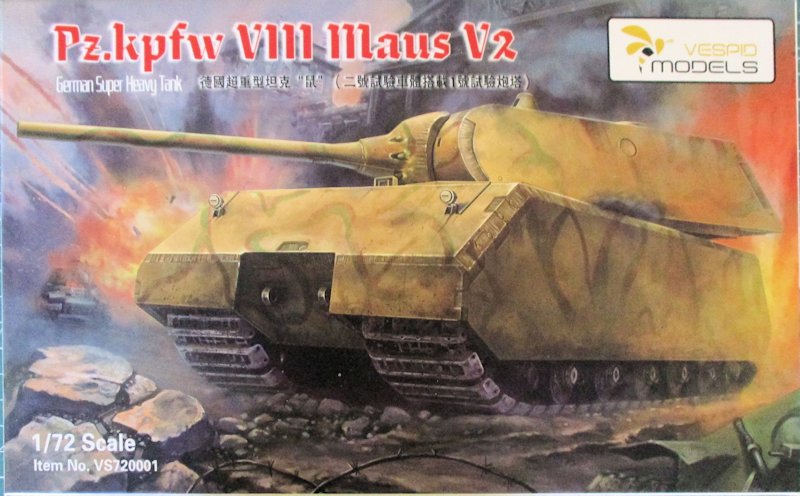 Bausatz: Neues aus Fernost. Vespid Models aus China hat als ersten Bausatz die "Maus" herausgebracht. In dem stabilen, schön gestalteten Stülpkarton befinden sich sieben verschieden große Gießäste, ein kleiner Fotoätzteilbogen, zwei Metallrohre, ein kleiner Decalbogen und die Bauanleitung.