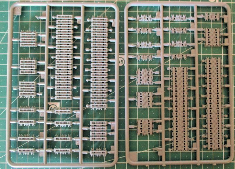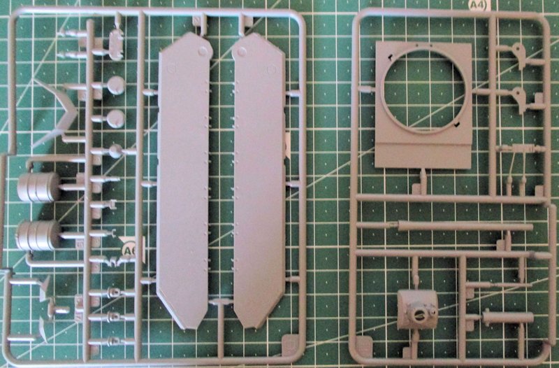 Die Teile in den Gießästen sind alle sehr sauber wiedergegeben. Es gibt nur sehr wenige Auswerfermarken und die dann an Stellen wo sie nicht stören. Die Angüsse an die Gießäste sind auch nicht zu dick. So dass sich die Teile ohne größere Probleme heraustrennen lassen. Gut gelungen ist auch die Darstellung der Schweißnähte und die Verzahnung der Panzerung.
