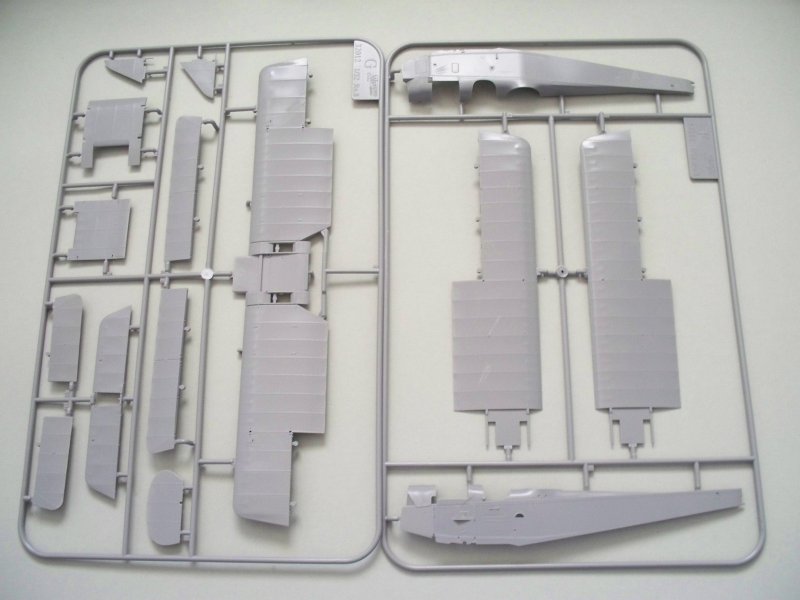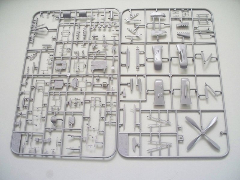 In dem typisch-nostalgischen Karton, befinden sich 270 Bauteile, welche einem das Gefühl geben, ich bastle kein Flugzeugmodell, sondern konstruiere eins. Allein der große Innenraum für die Besatzung und der V-12 Motor sind Modelle im Modell. Sämtliche kleinen Unterschiede für die fünf Varianten des Bausatzes sind berücksichtigt. Sei es die unterschiedliche Bewaffnung, das Cockpit oder der Motorbereich.