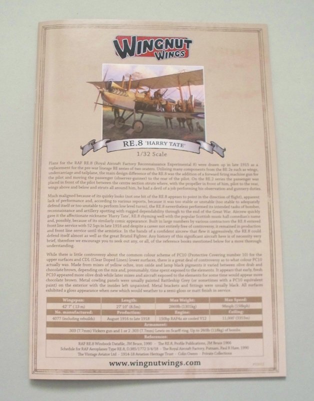 Das Modell der R.E.8 gehört zu den Neuheiten, welche die Neuseeländische Modellbauschmiede Wingnut Wings im Spätsommer letzten Jahres heraus gebracht hat. Und der Regisseur Peter Jackson scheint bei den Bausätzen ebenso viel Wert auf Präzision zu legen, wie bei seinen Spielfilmen.