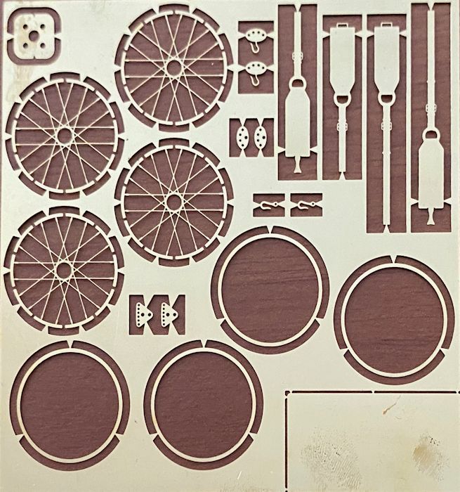 Hinzukommen Fotoätzteile insbesondere für die Speichenräder. Diese liegen sowohl als Plastikteil wie auch als filigraneres fotogeätztes Metall vor. Vergleicht man die Teile, wird man wohl dem Metallteil den Vorzug geben. WnW selbst empfiehlt die Fotoätzteile nur für erfahrene Modellbauer. Das ist gerechtfertigt, denn es sind pro Rad zwei Teile für die Speichen sowie zwei Teile für die Felgen. Hier muss sehr sorgfältig und vor allem geduldig gebogen werden. Aber wenn es nicht klappt, dann kann man immer noch die Plastikteile nehmen, die wirklich nicht schlecht sind. So geht frustfreies Bauen.
