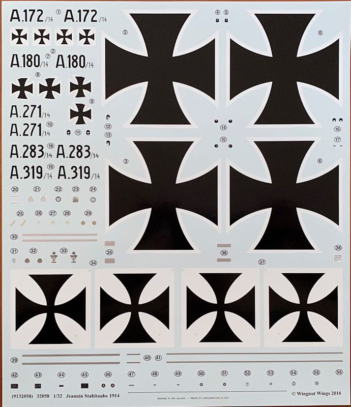 Bauanleitung/ Bemalung: Die Bauanleitung ist farbig und übersichtlich. Sie enthält zusätzliche Informationen zur Geschichte und ist ein Genuss zu lesen. Einige Fotos sollte man sich sehr sorgfältig für die Bespannung anschauen. WnW hält nicht viel von Spannschlössern. Deren genaue Lage und Aussehen kann man jedoch zum Teil auf den Fotos der Bauanleitung finden. Farbvorschläge sind für Tamiya- und Humbrolfarben sowie mit Federal Standard Nummern angegeben. Die Wasserschiebebilder sind groß. WnW weist ausdrücklich darauf hin, dass diese keinen weiteren Weichmacher benötigen und dies sogar schädlich sein könnte. Bisher habe ich keine schädliche Wirkung feststellen können. Notwendig war der Weichmacher jedoch nicht.