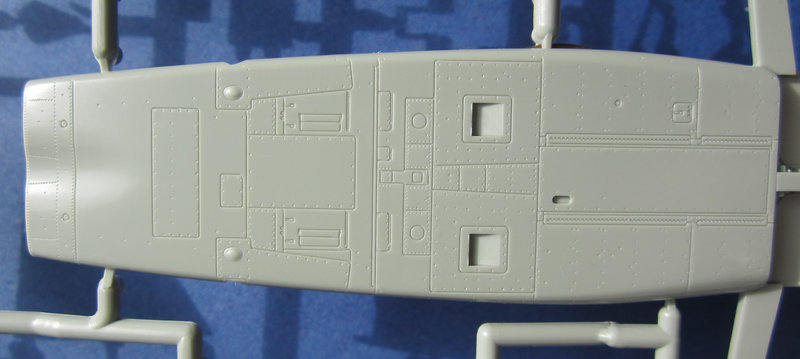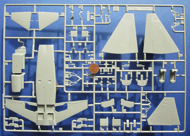 Es gibt jedoch auch einige Mankos bei meinem Exemplar. Die Flügel und das Leitwerk haben ziemlich heftige Flussmarken. In Streiflicht sind zwar keine Oberflächenmakel zu erkennen, aber zumindest eine Grundierung ist hier notwendig. Einige Teile haben leichte Sinkstellen, wenn auf der Rückseite dickere Details angegossen sind. Schließlich sind die Klarteile nicht völlig klar. Hier scheint die Form nicht auf absoluten Hochglanz poliert worden zu sein. Vielleicht hilft ein Bad in Future bzw. Klear.