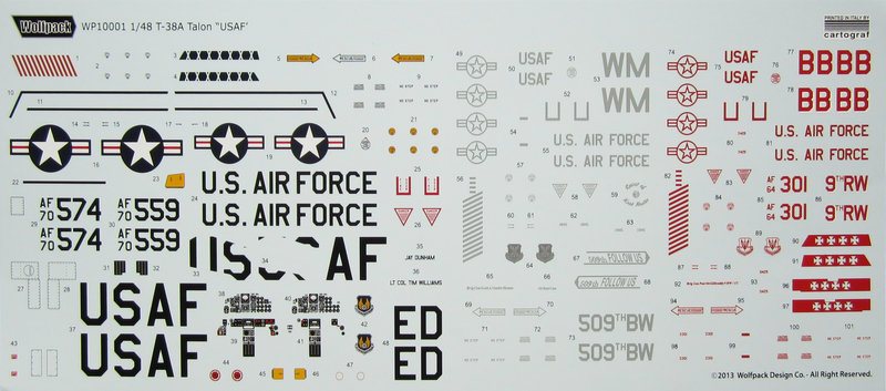 Bemalungsvarianten: Wolfpack bietet in dieser Box 5 Vorbilder zum Nachbauen an, zwei weiße eine graue und zwei schwarze. In der NASA Box gehts voraussichtlich etwas bunter zu. Die Decals sind von Cartograf und sehr gut gedruckt!