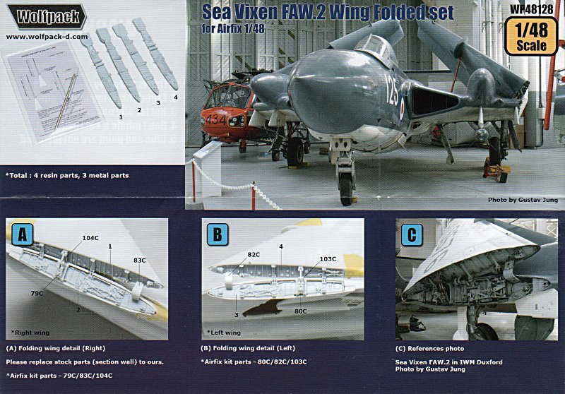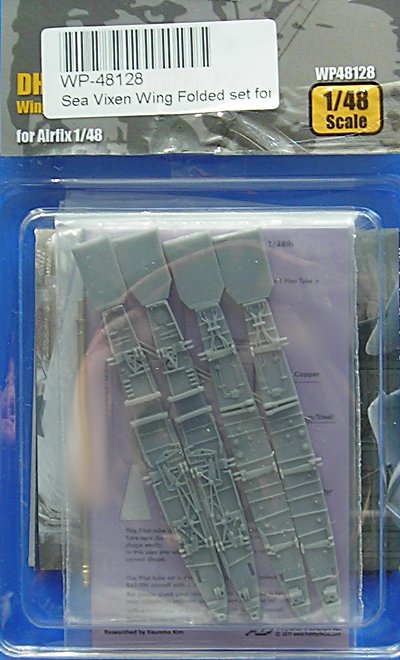 Mittlerweile sind einige Zubehörsätze für den schönen Bausatz der Sea Vixen von Airfix (Review) erschienen. Ganz neu ist dieser Satz für die Detaillierung des Flügelfaltmechanismus. Die 4 Resinteile ersetzen die in Plastik nich ganz so detailreich ausgespritzten Bausatzteile. Außerdem liegen noch gedrehte Pitotrohre und die Luftbetankungssonde bei.