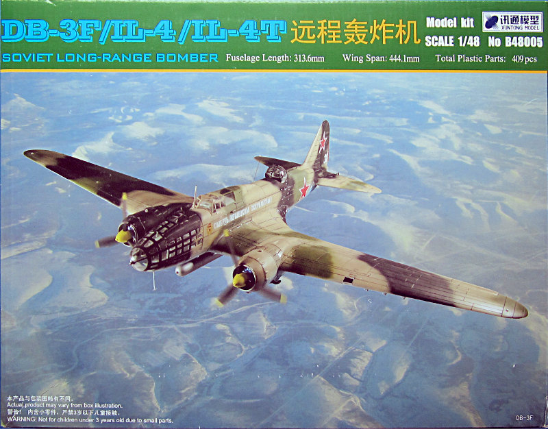 Vorbild: Die Il-4 war als Flugzeug in Ganzmetall-Halbschalenbauweise projektiert worden, jedoch mussten im Verlauf der Fertigung einzelne Baugruppen (Außenflügel, Rumpfbug und -heck) aufgrund der kriegsbedingten Metallknappheit durch Holzpressschalen ersetzt werde, was sich negativ auf die Flugleistungen auswirkte. Gegenüber ihrem direkten Vorgängermodell, der DB-3, war das auffälligste Merkmal der Maschine ihr verglaster und spitz zulaufender Rumpfbug, der nun mit einem Waffenstand, ausgerüstet mit einem 7,62-mm-SchKAS-MG, versehen war. Die trapezförmigen Tragflächen waren durch keilförmige ersetzt worden. Ergebnis war die DB-3F (DB = "Dalnij Bombardirowschtschik", Langstreckenbomber, F steht für forsirowanni, beschleunigt). Ein weiteres MG war im Rumpfturm untergebracht, ein drittes feuerte durch eine Klappe im Rumpfboden nach unten. Durch Verwendung von leistungsstärkeren Tumanski-Motoren vom Typ M-88B stieg die Startmasse geringfügig. Mitte 1939 flog die vorläufig DB-3F betitelte Maschine erstmals und Anfang des folgenden Jahres begann die Serienproduktion. Bis 1944 wurden 5.256 Maschinen der DB-3F/Il-4 gebaut.