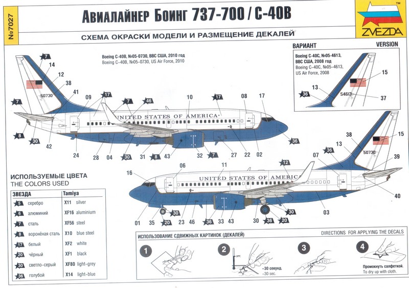 Fazit: Mit der aktuellen 737 Serie hat Zvezda sicherlich den Wunsch vieler Modellbauer erfüllt. Der Bausatz bietet eine gute bis sehr gute Qualität. Gerade der hier beschriebene Kit der -700 bietet zusammen mit den beschriebenen Optionsteilen und mit der möglichen Verwendung von Aftermarket-Decals ein enormes Potenzial. Sehr empfehlenswert.
