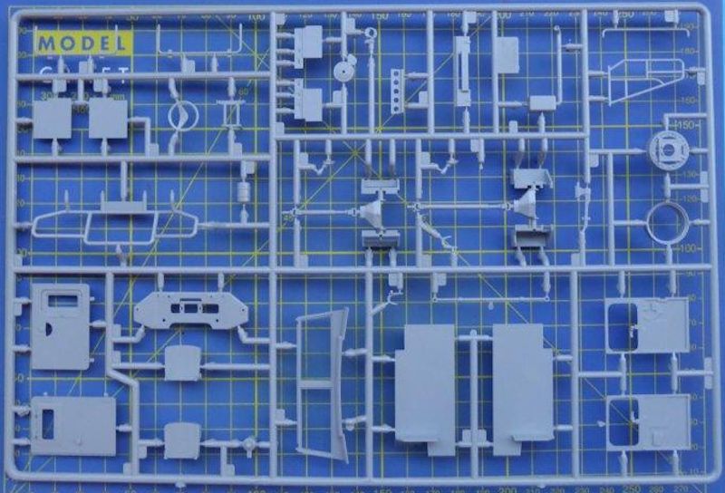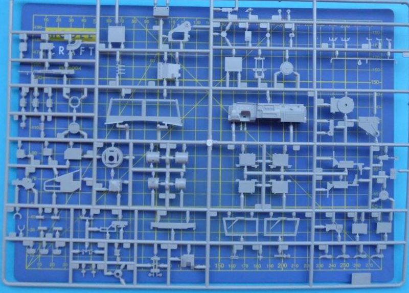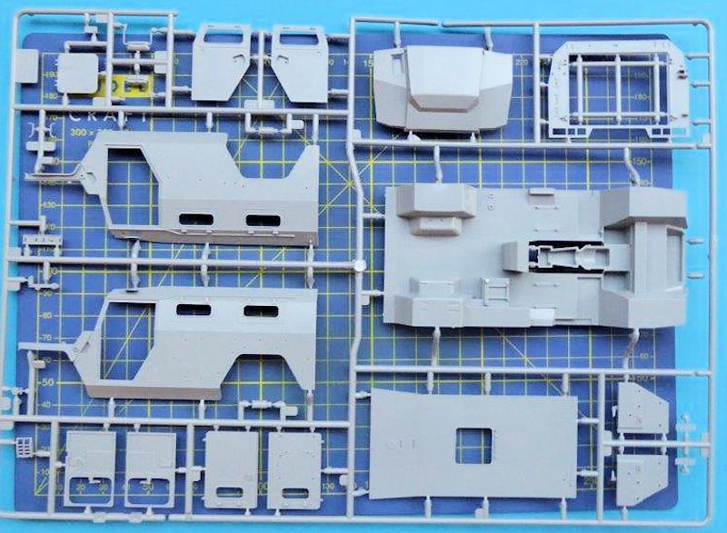Mit allen Drum und Dran umfasst der Bausatz 340 gut detaillierte Bauteile. Das fängt am Fahrzeugrahmen an geht über die Komplette Inneneinrichtung des Modells bis hin zur beweglichen Waffenstation mit sehr gut nachgebildeter Munitionszuführung. Auch die Karosserie mit den vielen Anbauteilen steht dem in nichts nach.