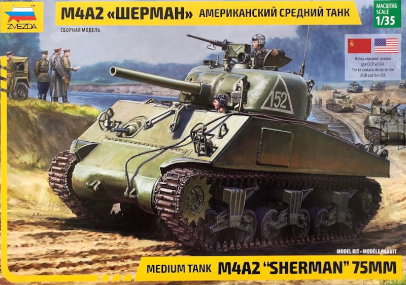 Bausatz: Die russische Firma Zvezda ist in erster Linie für Bausätze deutscher und russischer Panzer bekannt und nimmt nun mit dem Lend-Lease Sherman auch ein amerikanisches Fahrzeug in sein Programm auf. In der Vergangenheit hatten die großen Firmen wie Dragon und Tamiya in der Regel die "Nase vorne", was Detailtreue und Passgenauigkeit betraf, jedoch hat sich der Abstand zur Konkurrenz in den letzten Jahren deutlich reduziert.