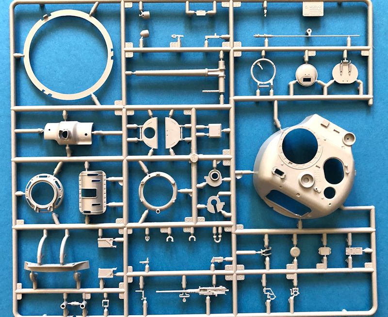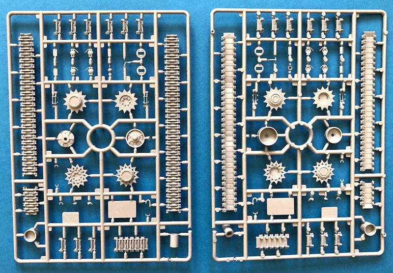 Unterzieht man nun die einzelnen Teile einer genauen Betrachtung stell man fest, dass Zvezda einen weiteren gewaltigen Satz nach vorne hinsichtlich Detaillierung erreicht hat. Die kleinsten Details sind sehr klar und stimmig dargestellt. Man findet nun auch Gussnummern auf dem Turm und den Teilen des Laufwerkes. Es ist zwar nicht möglich, die Laufräder mit Federfunktion darzustellen, aber die Teile geben das Original absolut überzeugend wieder.