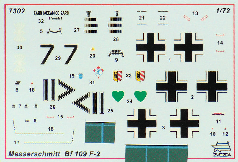 Der Decalbogen wurde bei Carson um die Hakenkreuze, die in Einzelteile zerlegt waren, erleichtert. Es gibt ein paar Wartungshinweise und der Druck ist tadellos.