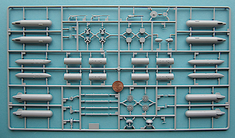 Ein Spritzling ist der Bewaffnung vorbehalten. Hier gibt es zwei Kanonenbehälter UPK-23-250, vier Startbehälter für ungelenkte Raketen B-8B20A, 4 Panzerabwehrlenkraketen 9M114-"Schturm" (2er Starter) und 4 "Behälter". Letztere könnten Aerosolbomben sein, oder einfach Zusatzbehälter für Treibstoff. Insgesamt ist dies eine ziemlich gute Ausstattung, aber es wird sicher noch deutlich mehr von den Zubehörherstellern geben.