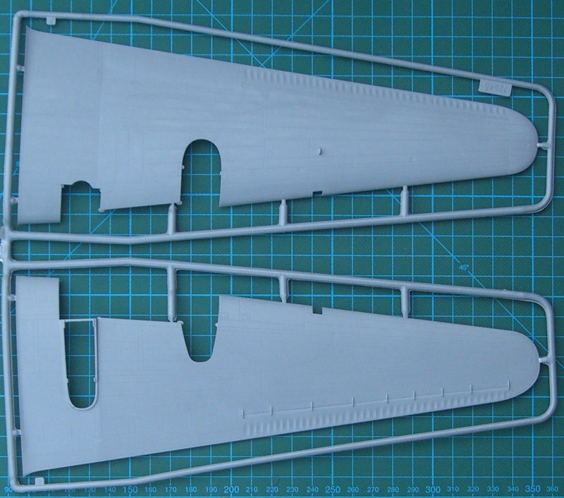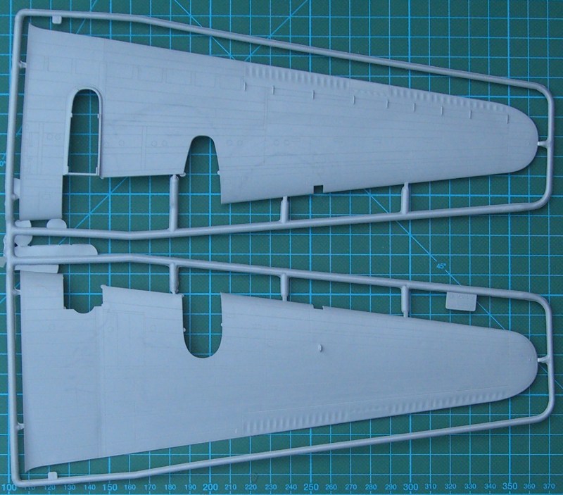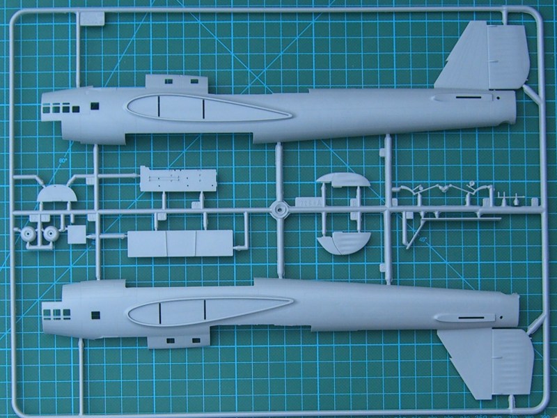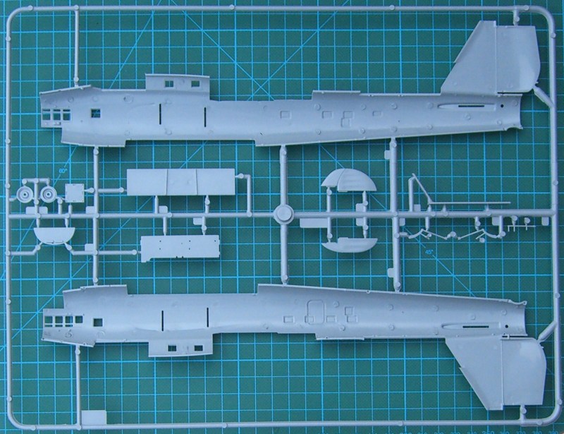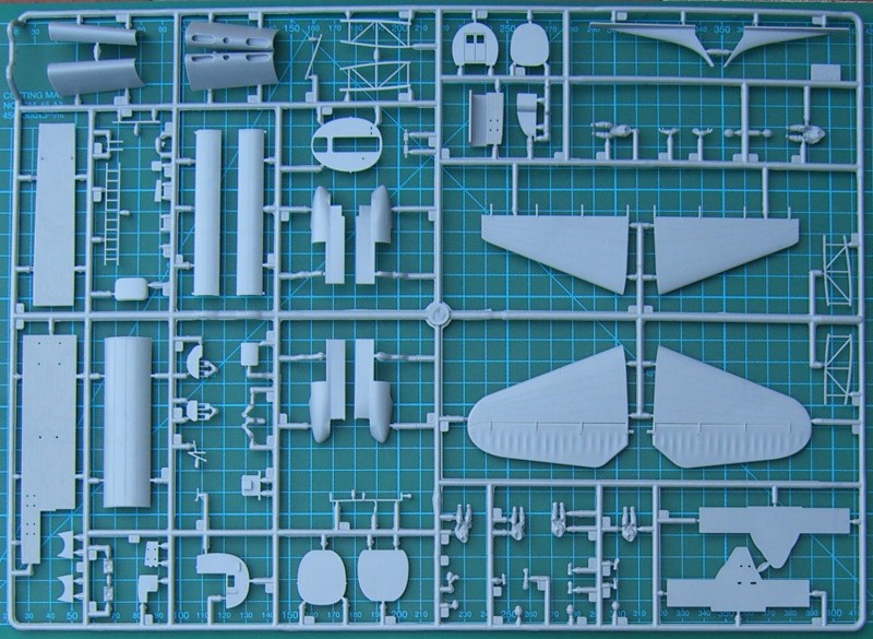 Das Modell besitzt eine komplette Inneneinrichtung. Sicherlich kann man hier und da noch was ergänzen (Sitzgurte z.B.). Entscheidend ist aber auch was davon später noch zu sehen ist. Interessant ist auch die Tatsache, dass man im Hause Zvezda auf Figuren zur Darstellung der Besatzung mal nicht verzichtet hat. Diese sehen auch ganz brauchbar aus. Eine gewisse Stabilität der Tragflächen-Rumpf-Verbindung wird durch zwei Holme erzielt. Auch das Höhenleitwerk wird nur aufgesteckt.