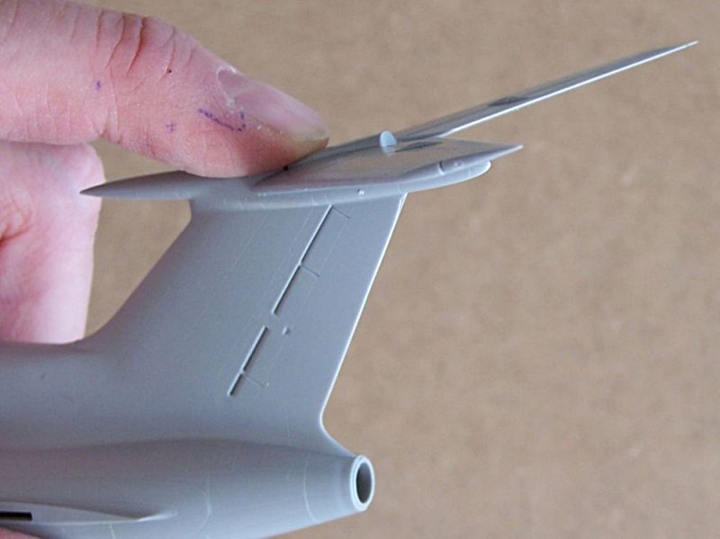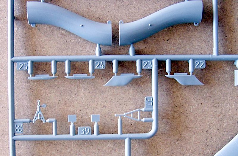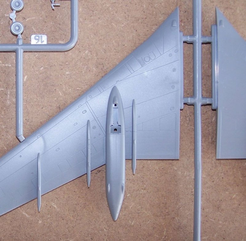 Die Aufteilung der Teile entspricht üblichem Standard, das Höhenleitwerk ist sehr clever gestaltet und passt beim ersten Anpassen super. Gleiches gilt für die Tragflächen. Fahrwerk und Triebwerke sind ebenfalls detailliert und fein gestaltet, allerdings ist das Triebwerksfanblatt etwas einfach gehalten.