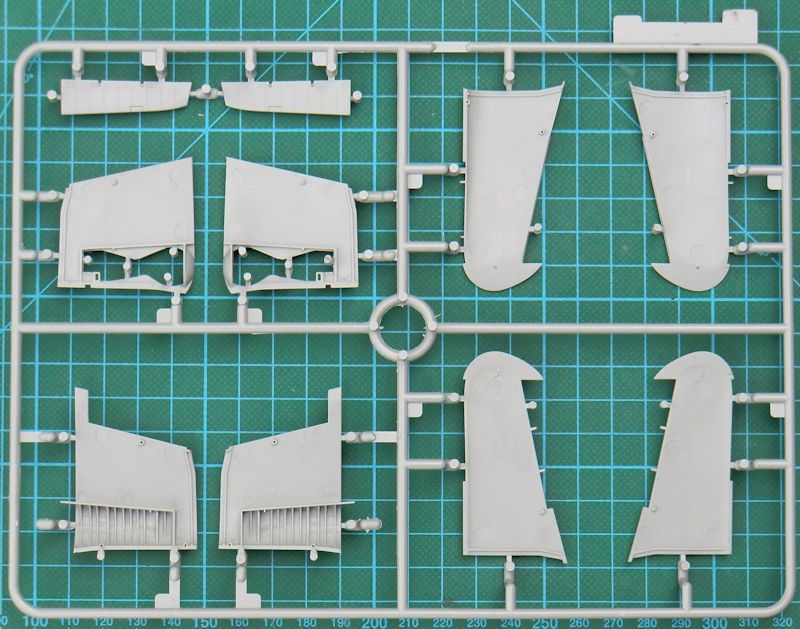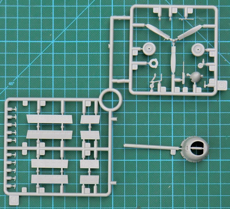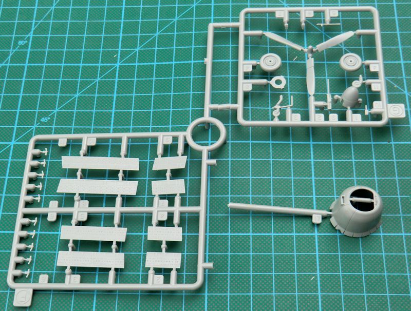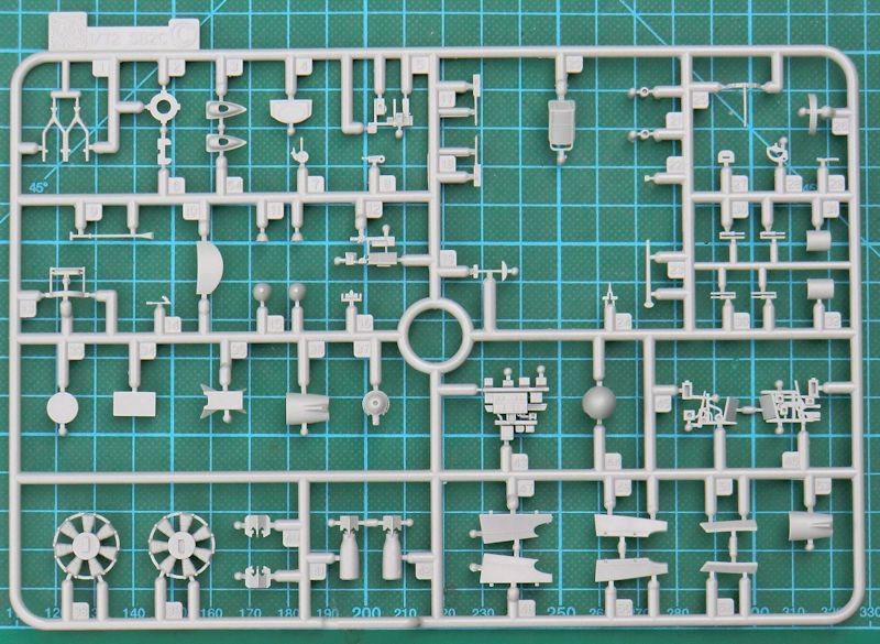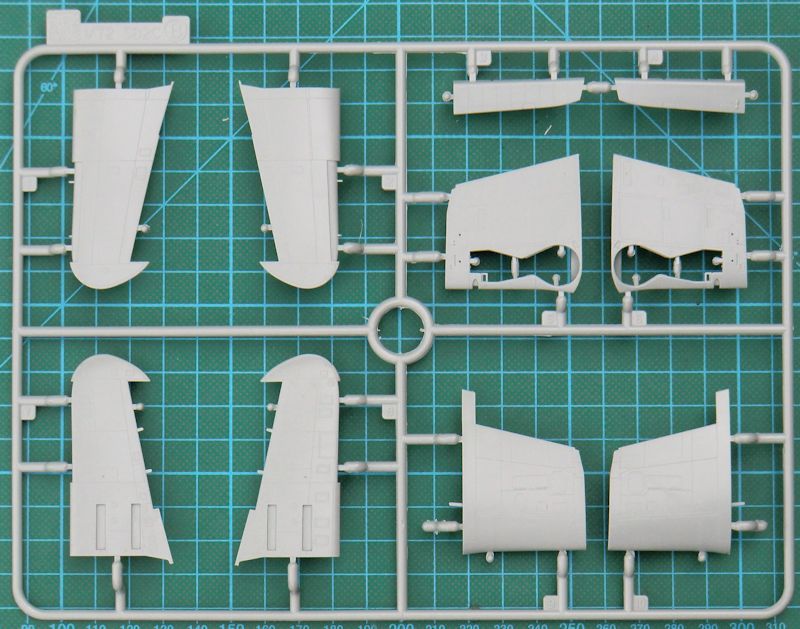 Die A-25A erhält ein neues Spornrad. Dazu muss das Kleine der Navy-Version entfernt werden. Das zweiläufige Kaliber .50-MG ist gut gemacht. Auch der Bombenschacht ist samt den Abwurfgabeln toll gemacht. Die Triebwerkseinheit ist identisch mit denen der Helldiver-Bausätze. Es gibt vorbildgerecht eine Drei-Blatt-Luftschraube.