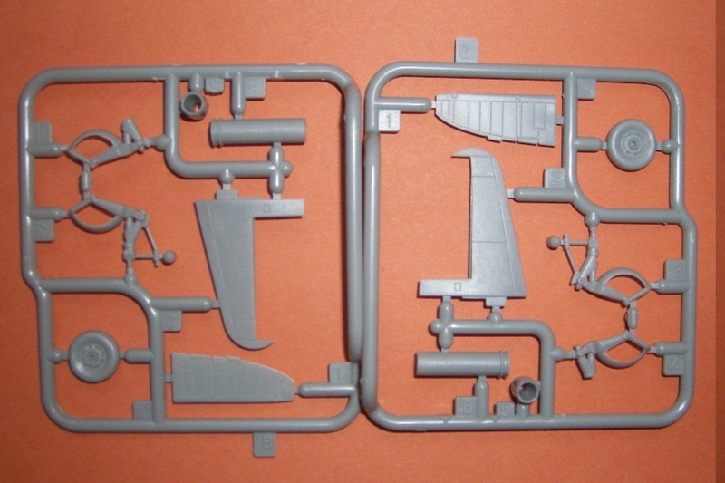 Bein Cockpit liegt man vorn und liefert mit den gestalteten Seitenwänden mehr als Sitz, Steuerknüppel und Instrumentenbrett. Der fortgeschrittene Modellbauer kann auch hier die Sitzgurte ergänzen. Beim Zusammenbau des Rumpfes wird auf den notwendigen im Bug hingewiesen. Land- und Bremsklappen sowie Seiten- und Höhenleitwerke sind für einen variablen Anbau ausgelegt. Das Fahrwerk ist gut dargestellt.