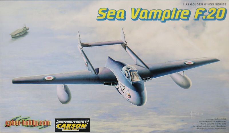 Noch während des WK II suchte die britische Admiralität ein strahlgetriebenes Flugzeug für Trägereinsätze. Bei der RAE (Aerodynamics Flight) baute man den zweiten Prototyp der Vampire für die Bedürfnisse des Trägereinsatzes um. Die LZ551/G flog umgebaut erstmals im Mai 1945. Nach einer umfangreichen Erprobung führte Lt Cdr Eric Brown am 03. Dezember 1945 die erste Trägerlandung auf der HMS Ocean durch. Es war gleichzeitig die erste Landung eines Jets auf einem Flugzeugträger überhaupt. Diese Maschine ist heute noch im FAA Museum erhalten. Aufgrund einer folgenden Ausschreibung worin die nötigen Änderungen spezifiziert wurden, bestellte die Admiralität am 21. März 1947 30 Sea Vampire F.20. Allerdings wurde diese Bestellung im Januar 1948 schon wieder auf 18 Exemplare reduziert. Alle diese Maschinen wurden aus Vampire FB.Mk.5 zu F.20 umgebaut. Dabei wurden insbesondere die Landeklappen, die Luftbremsen und das Fahrwerk modifiziert und ein Fanghaken montiert. Bis zum Juli 1949 waren die Arbeiten an allen 18 Exemplaren abgeschlossen. Faltflügel besaßen diese Maschinen übrigens nicht, denn sie konnten ohne Probleme mit den vorhandenen Fahrstühlen auf den Trägern transportiert werden. Bis 1956 wurden diese 18 Maschinen bei der Fleet Air Arm eingesetzt.
