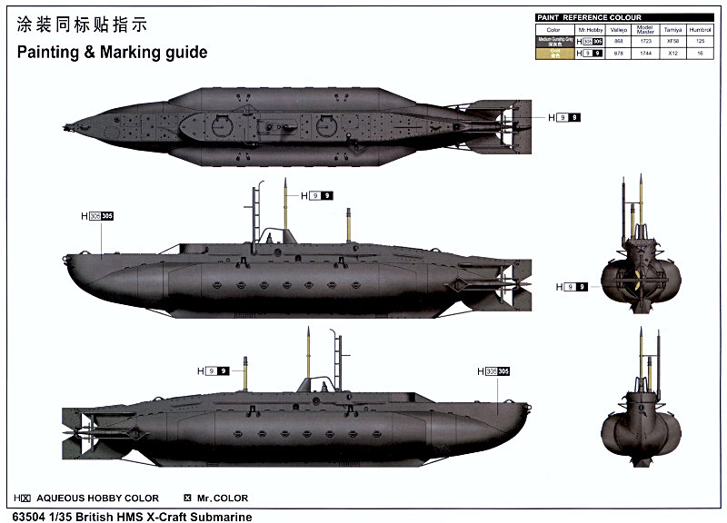 Das Original: Das X-Craft ist der wohl bekannteste Kleinst-U-Boot-Typ der Royal Navy. Die Entwicklungsarbeiten begannen bereits 1939, doch konnte die Einsatzerprobung erst im Herbst 1942 aufgenommen werden. Kurz darauf begann dann der Serienbau in drei getrennten Sektionen verteilt auf drei Werften. Die Endmontage fand bei Vickers-Armstrongs, die auch die Mittelsektion baute, statt.