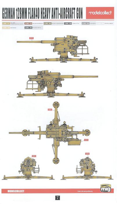 Bemalung: Abziehbilder liegen keine bei, wobei hier auch nur Abschussmarken Sinn gemacht hätten. Für die Bemalung findet man zwei farbig gestaltete Varianten in Dunkelgelb oder Dunkelgrau. Die Farbangaben beziehen sich auf das Farbsortiment von MIG.