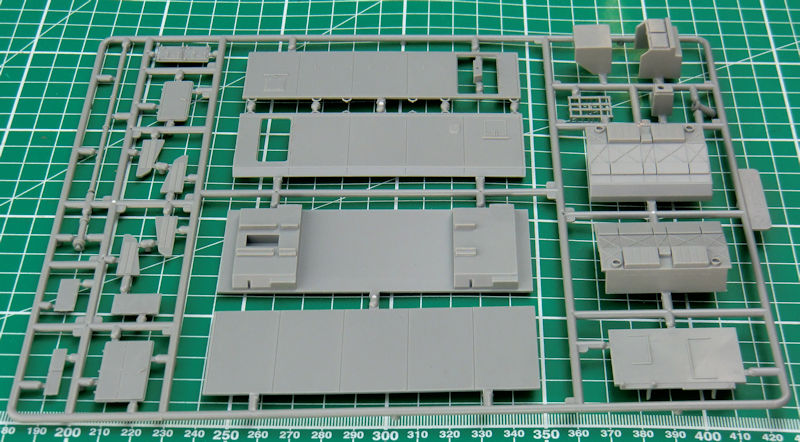 Bausatz: Da dieses Führungsfahrzeug Bestandteil des S-300-Komplexes ist, war es für modelcollect natürlich naheliegend neben den Raketen tragenden Fahrzeugen auch dieses herauszubringen. In dem stabilen attraktiven Stülpkarton befinden sich gut verpackt nicht weniger sechs hellgraue Spritzlinge mit 187 Teilen, ein Fahrerhaus, ein klarer Spritzling mit neun Teilen, zwei Fotoätzteile, acht Gummireifen, ein Decalbogen und die informative mehrfarbige Bau- und Bemalungsanleitung.