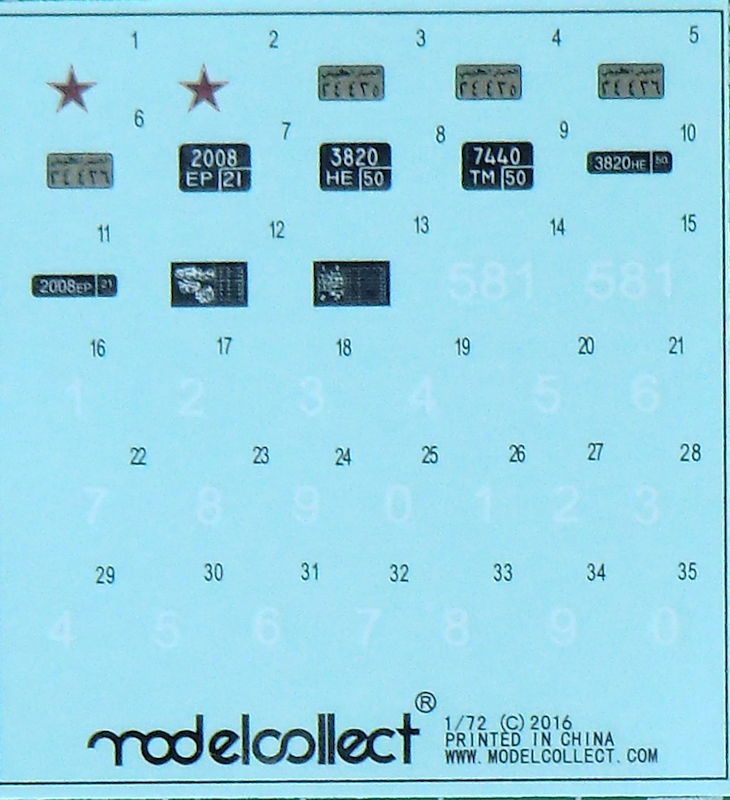 Der kleine Decalbogen mit Nummernschildern und Makierungen ist tadellos gedruckt. Die Farbangaben sind für das System von mig.