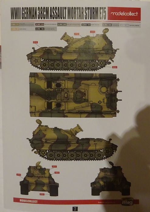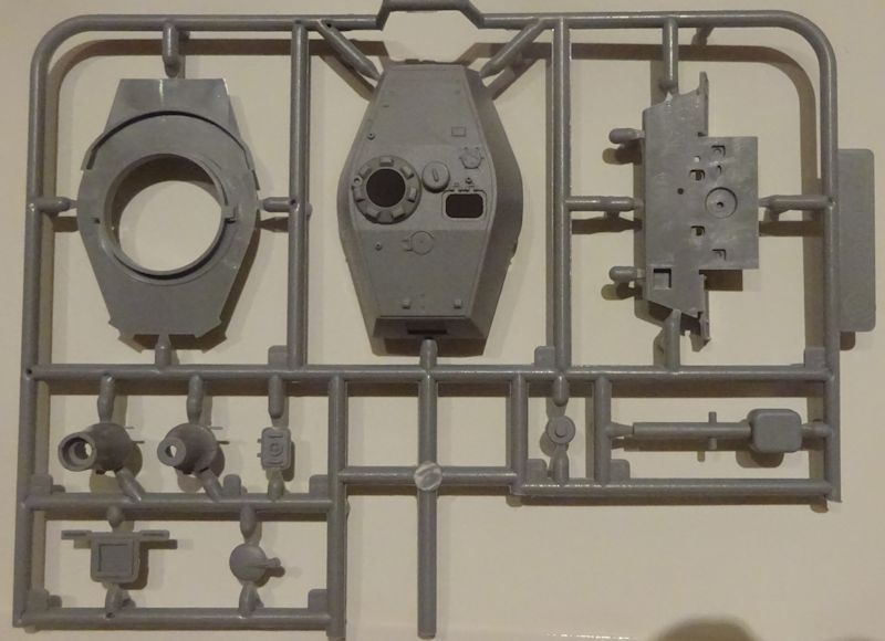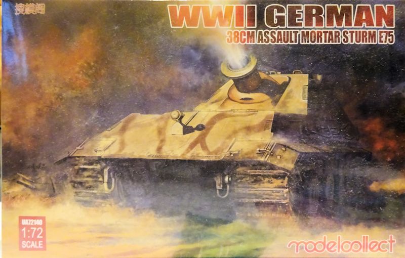 Bausatz: Der E-75 Mörser ist eine weitere Variante des 2014 erschienenen E-75. mit neuen Teilen. In dem schön gestalteten Stülpkarton befinden sich 9 hellgraue Gießäste drei kleine Fotoätzplatinen sowie ein kleiner Abziehbilderbogen.