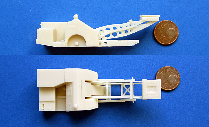 Die Älteren werden Sich erinnern, das ESCI mal ein ähnliches Fahrzeug herausgebracht hat, dies hat aber einen deutlichen Spielzeugcharakter. Natürlich kann man das optimieren, aber mit 16 Euro ist dieses Geißharzmodell auch nicht zu teuer. Allerdings ist zu sagen, dass das Plastik etwas verwindungssteifer ist, daher sollte man das Resinmodell in einer Position fixieren.