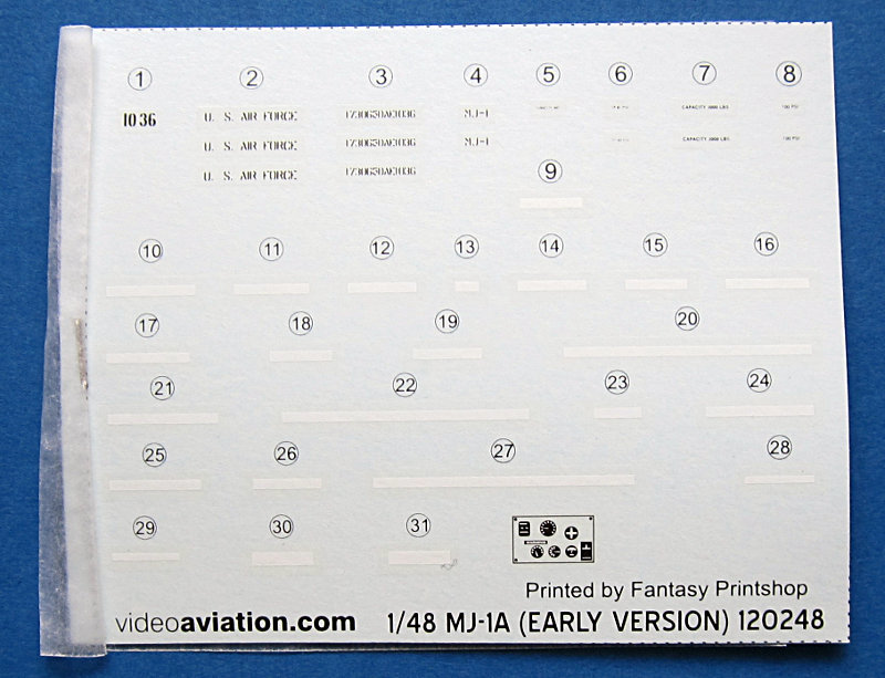 Bausatz: Der noch recht junge Hersteller bietet mit diesem Modell ein Highlight für alle Dioramenfreunde. Durch geschickte Aufteilung des Bausatzes lassen Sich verschiedenen Versionen anbieten. Diese frühe Variante des MJ-1 hat ein ziemlich glattes Äußeres und ist in gelb gehalten. Die Abziehbilder sind darauf abgestimmt.
