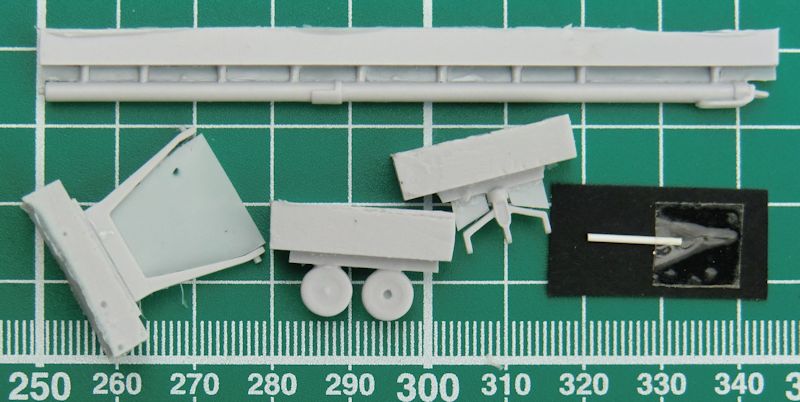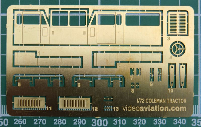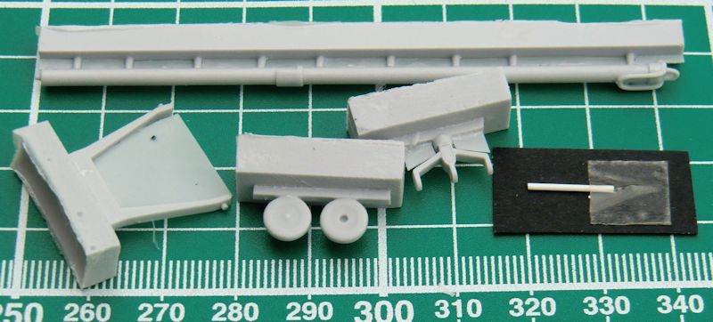 Das Fahrerhaus entsteht aus Fotoätzteilen und für die Verglasung gibt es acht fertiggeschnittene Klarsichtfolien. Selbst an die Scheibenwischer hat man gedacht. Innen gibt es eine Einrichtung. Eine passende Schleppstange liegt dem Bausatz auch bei.