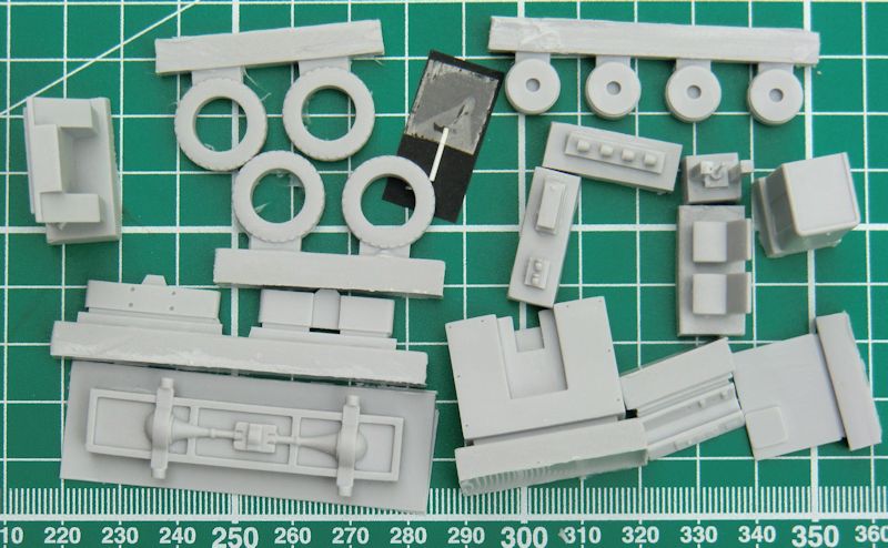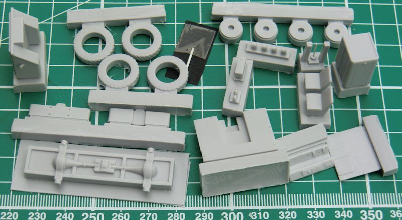 Ich war etwas überrascht als ich die Anzahl der Teile in dem Karton fand. Der Guss der Resinteile ist sehr sauber. Die Angüsse sind gut gewählt.