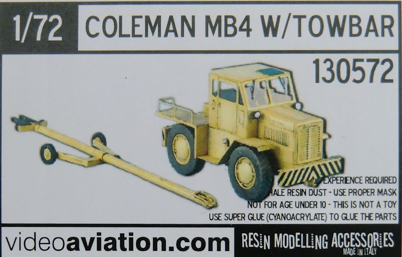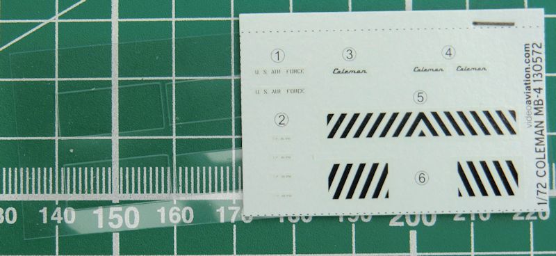 Bausatz: Nachdem es in 1/48 schon den Coleman MB-4 von videoaviation.com folgte nun folgerichtig ein Bausatz in 1/72. In dem kleinen stabilen Karton befinden sich gut verpackt eine Fotoätzplatine, 31 Resinteile, acht Klarsichtteile, ein Metallteil, ein Decalbogen und die übersichtliche Bauanleitung.