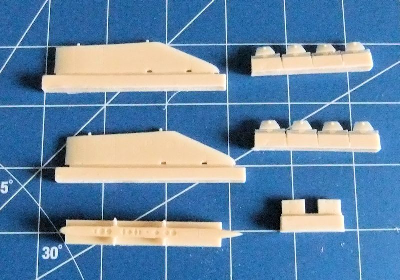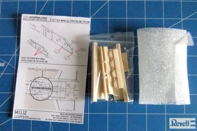 Das kleine Set ist aus ockerfarbigen Resinmaterial gefertigt, und wirkt, was die Gravuren sowie den Abguss anbelangt, sehr überzeugend. Vor allem die kleinen Halterungen mit den Befestigungspunkten für die Waffen sind gut gemacht. Gedacht ist der Bausatz für die Starfightermodelle von Italeri, Hasegawa und Revell.