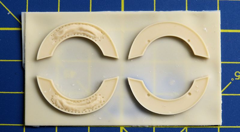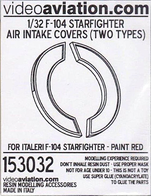 Für den Italeri Starfighter hat videoaviation ein nettes Gadget herausgebracht: Schutzkappen für die Lufteinläufe. Videoaviation liefert hier zwei Versionen in einer durchsichtigen Verpackung. Der Resinguss ist sauber gelungen. In einer Resinplatte angegossen müssen diese herausgearbeitet werden.