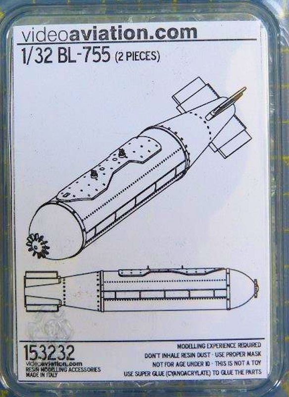 Vorbild: Die BL-755 Streu und Clusterbombe wurde von der britischen Firma Huntington Engineering konzipiert und gebaut. Diese 278 kg schwere Bombe beinhaltete 147 ca. 1 kg schwere Kleinbomben, die sich nach dem Auslösen separieren und ein Gebiet von 60 x 150m abdeckten. Mittlerweile ist sie als Streubombe verboten und wurde komplett aus dem Inventar der Nato genommen.