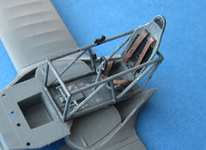 Wirklich interessant wird es bei der Verspannung. Zunächst muss man sich mal die richtigen Punkte am Rumpf suchen, wo die einzelnen Spannseile befestigt sind bzw. durchgehen. Das war gar nicht so einfach und ich musste einige Fotos konsultieren, bis ich ein plausibles Ergebnis erzielen konnte. Eigentlich sind die Seile stromlinienförmige Stahlbänder, aber das war mir zu viel Aufwand und ich finde es sieht auch nicht schlecht aus. Inzwischen gibt es z.B. einen Satz von SBS Model.
