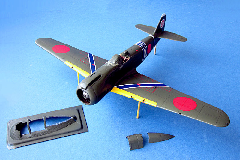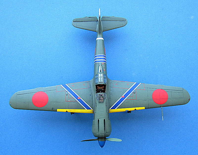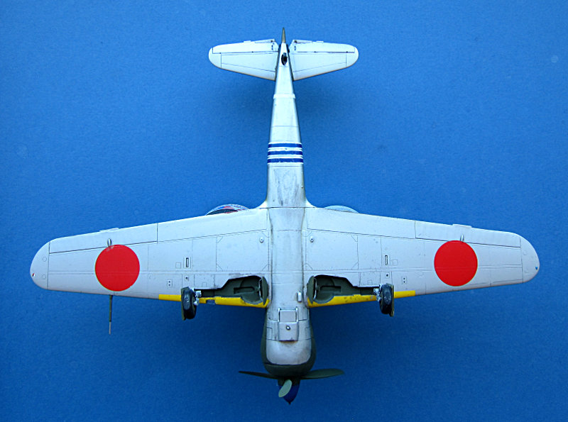 Wie das immer so ist, kam jetzt jemand in den Thread, der mir mitteilte, dass mein Modell komplett falsch sei. Die meisten Punkte, die Jean Barby (hier) anführte, habe ich bereits erwähnt bzw. kommentiert. Das Problem mit der Rumpfform sehe ich nicht … auch im Vergleich mit Originalfotos aus verschiedenen Publikationen. Das spricht wahrscheinlich eher gegen mich, hilft mir aber auch, gut mit dem Modell zu leben. Zur Farbe hab ich ja schon mehrfach etwas geschrieben: mir gefällt dieses grün für außen und die Cockpitfarbe ist höchstwahrscheinlich falsch. Darüber hinaus ist anzumerken, dass die Markierungen ausschließlich auf den Erinnerungen von Yohei Hinoki basieren und auch insofern unvollständig sind, dass an den Fahrwerksklappen eine Nummer angebracht war, welche er aber vergessen hat.