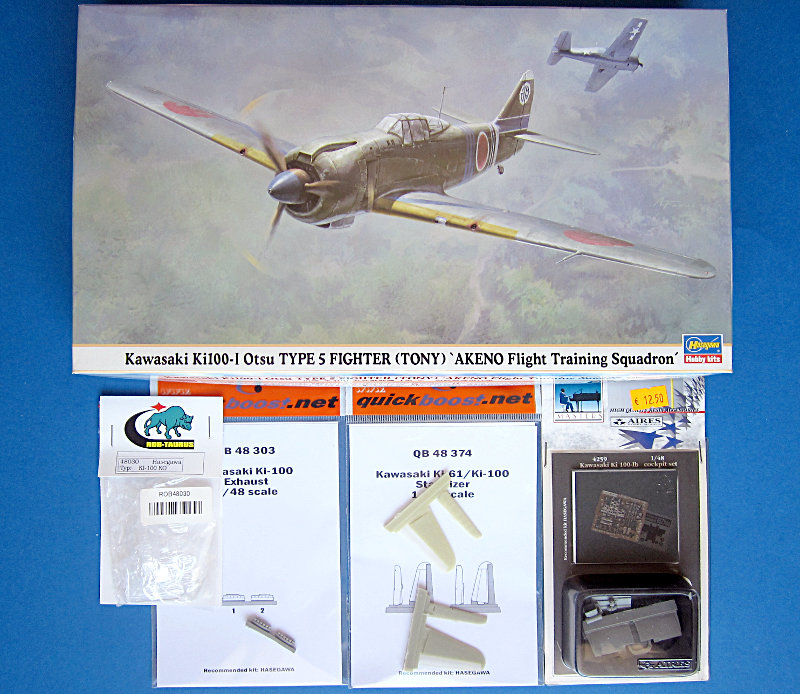Das Projekt sollte fast aus dem Kasten gebaut werden, aber ich hab mich doch für einige Zubehörsets entschieden. Hasegawas Grundbausatz habe ich ein Cockpit von Aires spendiert, welches mit dem Zoom Instrumentenbrett von Eduard ergänzt wurde. Weiterhin wurden Auspuffstutzen von Quickboost und die Vakukanzel von Rob Taurus verwendet. Da mir das Weiß der Hasegawadecals meist zu gelblich ist, habe ich die Markierungen aus dem Lifelikebogen verwendet. Für die Bemalung habe ich die Farben aus dem Gunze Laquer Programm gemäß Hasegawas Bemalungsanleitung bestellt. Zur Klärung von Detailfragen hatte ich das Maru Mechanic zur Ki 61/100 und Ki 48.