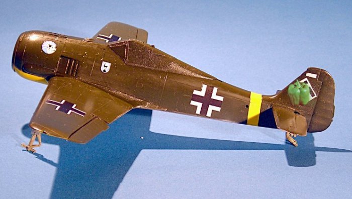 Es folgte das übernebeln an Hoheitszeichen und Werknummer gemäß Foto. Dann noch zwei Schichten Klear und dann ein Washing in Umbra Natur und Schwarz. Eine Schicht Mattlack (Gunze) versiegelt alles und gibt dem ganzen ein einheitliches Aussehen. Jetzt wurden die Details angebracht und fertig. Nun ja, nicht ganz . Die Haube hatte einen Kleinen Knack bekommen und es war auch etwas Farbe eingesickert. Zum Glück hat der Eduard Bausatz so viele Kanzeln. Eine musste als Ersatz herhalten, auch wenn die Form leicht unterschiedlich ist.