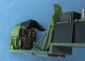 Los geht's mit dem Inneren. Dieses ist recht gut detailliert und ich habe hier lediglich Eduard Steel Belts und das Yahu Instrumentenbrett ergänzt. Letzteres musste ich mit dem Motortool etwas anpassen, damit es in das Modell passt. Die Farbangaben sind übrigens sehr gewöhnungsbedürftig, da die Tabelle in der Bauanleitung an chinesische Lesegewohnheiten angelehnt ist und im Bauschritt lediglich Meng/Mig-Farben genannt sind. Diese habe ich extra erworben, aber sie gefallen mir nicht sehr gut. Der Farbton für das Cockpit erscheint mir darüberhinaus falsch. Probepassungen enden immer damit, dass man die Teile nur mit etwas Gewalt wieder voneinander lösen kann… das ist eben ein Nachteil des Konzepts.