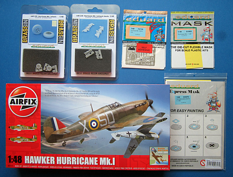 Den Bausatz von Airfix habe ich mir frühzeitig gekauft und daher kein Review geschrieben. Utz hatte – aus verständlichen Gründen – leider nicht die Muße einzelne Berichte zu schrieben, weshalb ich hier auf seine Doppelbesprechung mit der Spitfire I verweise. Außerdem habe ich den Zoomsatz von Eduard, die Masken für die Verglasung und die Tarnung (A Scheme) sowie die Brassin Räder und Auspuffstutzen verwandt.