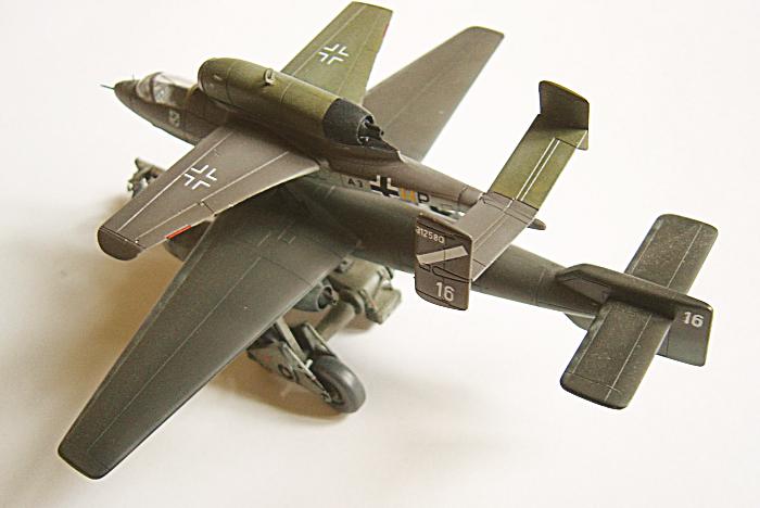 Der Bau: Der Bausatz von Revell ist von Dragon übernommen und weist daher sowohl beim Basisflugzeug, dem Rollwagen als auch bei dem eher zierlichen Salamander sehr gute Oberflächenstrukturen und eine ausgezeichnete Passgenauigkeit auf. Der Bau erfolgte entsprechend dem sehr übersichtlichen Bauplan, wobei lediglich darauf zu achten ist, dass das Gegengewicht in der Nase der Arado nicht vergessen wird, denn ansonsten kippt die Gesamtkonstruktion hinten über.