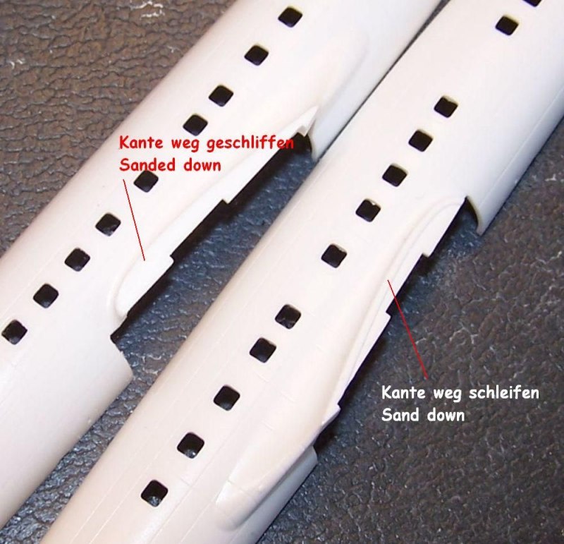 Negativanmerkung: Die Fensteröffnungen passten bei mir nicht mit den Fenstern im Rumpf übereinander. Ich musste das Decal jeweils 3x schneiden (siehe Foto) und den Schnitt mit Farbe nachbehandeln. Auch bei vorherigen Kopien und Trockenanpassungen bahnte sich dieses Problem schon an.