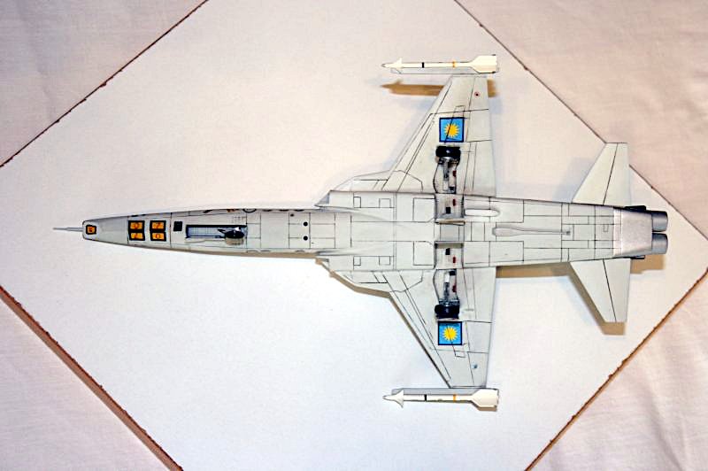 Vorbild: Der Fotoaufklärer RF-5E Tigereye wurde aus der F-5E Tiger II entwickelt. Die US Air Force setzte das Flugzeug nur in geringer Stückzahl ein. Hauptsächliche Nutzer waren sogenannte zweitrangige Luftwaffen, wie beispielsweise Taiwan, Südkorea, Malaysia und Saudi Arabien.