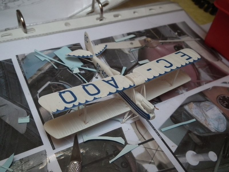 Die inneren, hinteren Streben zur Montage der oberen Tragfläche habe ich erst gar nicht versucht zu verwenden, sondern gleich neu angefertigt. Zur Montage des Tragwerkes wurden erst die vordere Rumpfabstützung und das untere Flügelpaar mit den äußeren Streben angeleimt. Nach der Lackierung erfolgten die Montage der oberen Tragfläche und das Einsetzen der hinteren Rumpfstreben.