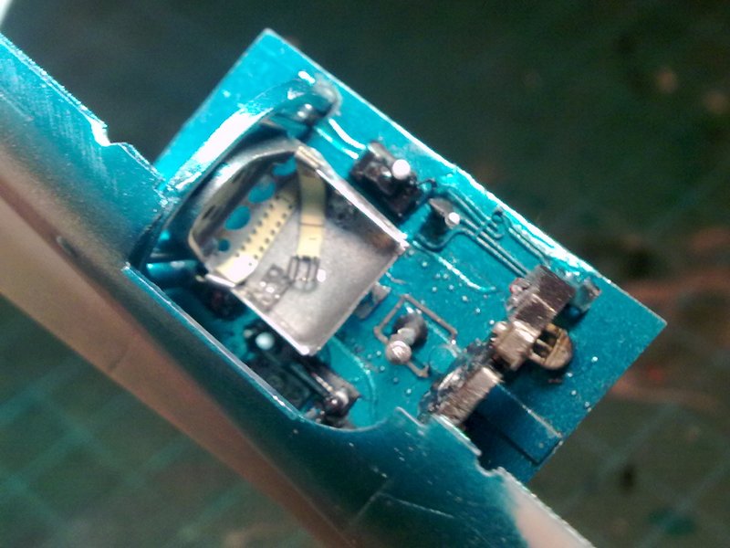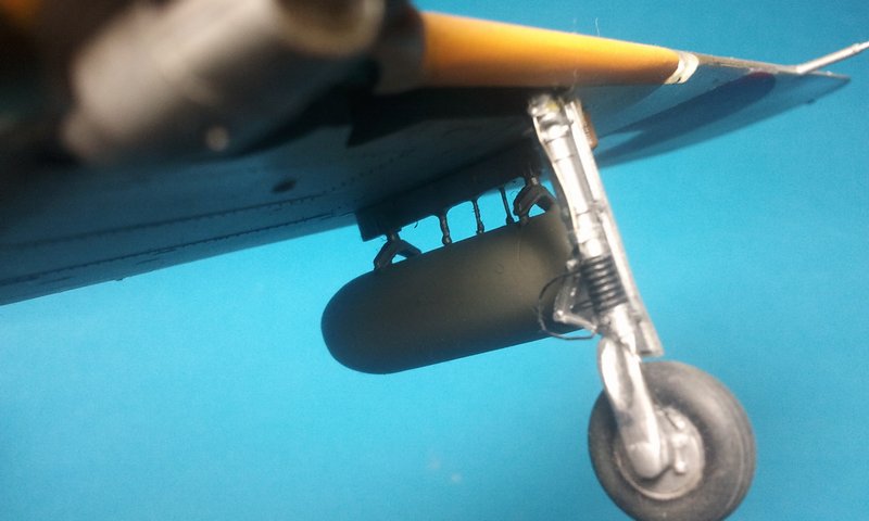Das Landelicht wurde verschliffen und anschließend wieder klar poliert, das Pitotrohr durch Messingrohr und Stahldraht ersetzt, unter der Cockpithaube wurde außerdem eine Leitung zum akustischen Tankwarner ergänzt. Die Träger der Zusatztanks wurden mit einer Treibstoffleitung und Halterungen aus Draht verfeinert. Die beiden kleinen Schienen an den Flügel-Hinterkanten für die Butterfly-Flaps sind während des Baus mehrmals abgebrochen und wurden ebenfalls durch Draht ersetzt. Die Fahrwerksbeine erhielten Bremsleitungen ebenfalls aus Draht.